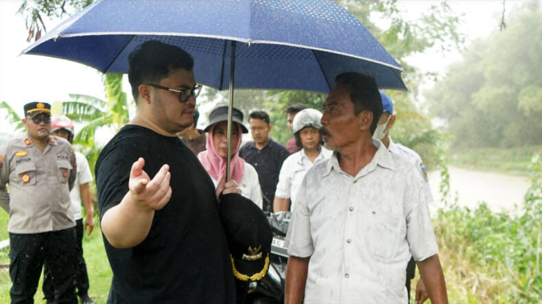 KEDIRI – Bupati Kediri Hanindhito Himawan Pramana melakukan pengecekan langsung aliran sungai yang mengalami ...