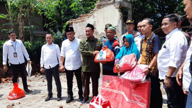 PONOROGO – Bupati Ponorogo, Sugiri Sancoko, menyerahkan bantuan kepada Sujarno, warga Desa Pandak, Kecamatan ...