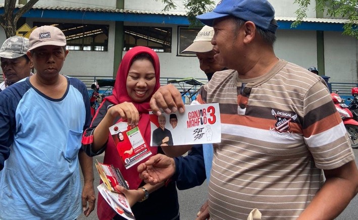 Zumrotun Khabiba Blusukan ke Pasar, Sebar Stiker Bergambar Dirinya dan Ganjar – Mahfud