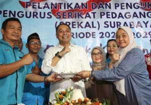 SURABAYA – Wali Kota Surabaya Eri Cahyadi melantik pengurus Serikat Pedagang Kaki Lima (SPEKEL) Surabaya periode ...