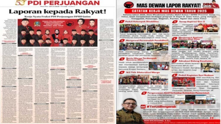 SURABAYA – Ulang tahun PDI Perjuangan ke-53 pada 10 Januari 2026 tak cuma dirayakan dengan seremoni dan potong tumpeng. Di Jawa Timur, momen itu justru dirayakan menjadi hari “laporan besar-besaran”, di mana 328 anggota DPRD dari Fraksi PDI Perjuangan, mulai 21 orang anggota DPRD tingkat provinsi hingga 308 anggota DPRD kabupaten/kota, serentak melaporkan kinerja mereka selama tahun 2025 langsung ke rakyat.