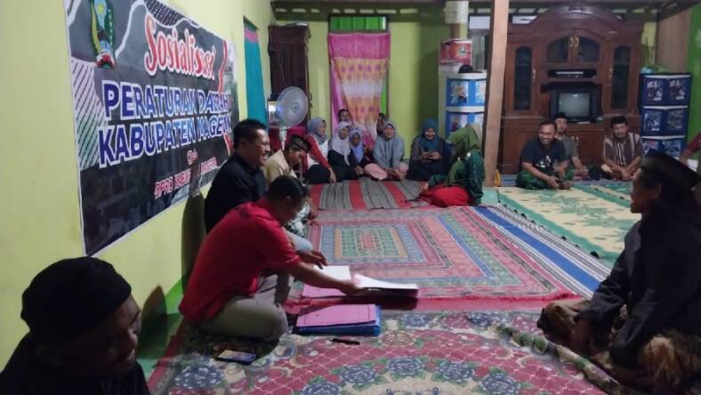 MAGETAN – Ketua DPRD Magetan, Sujatno menggelar sosialisasi peraturan daerah (sosper) dan sekaligus menyerap aspirasi dari warga masyarakat di Desa Giripurna Kecamatan Kawedanan, Rabu (24/5/2023) malam.