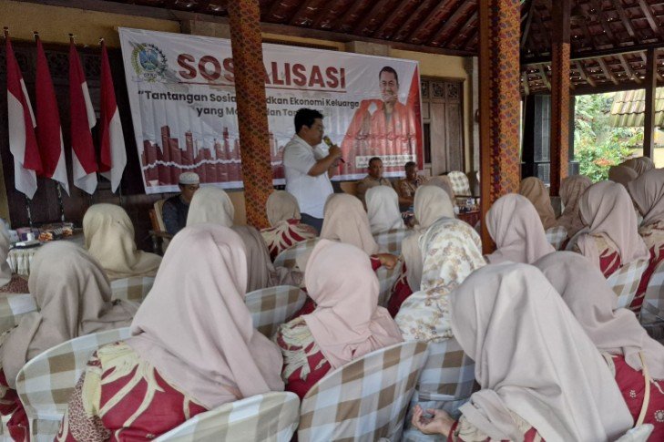 LUMAJANG – Anggota DPRD Provinsi Jawa Timur, Agus Wicaksono melakukan sosialisasi dengan tema Tantangan Sosial Wujudkan Ekonomi Keluarga yang Mandiri dan Tangguh. Acara berlangsung di Hotel Somanake, pada Minggu (14/9/2025).