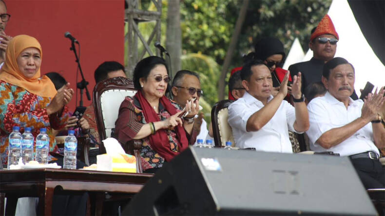 “Saya bilang politik sekarang itu seperti orang berdansa. Tahun-tahun ini nih politik. Kenapa? Aku melu no kono atau melu dua-duane, pusing akhirnya pingsan dewe. Gitu loh jadi jangan terbawa arus,” tutur Megawati.