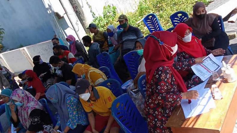 Sementara anggota Komisi III DPR RI Bambang Dwi Hartono, melalui Sarinah Masangan Kulon bekerja sama dengan Polres Sidoarjo menggelar vaksinasi tahap II di Desa Masangan Kulon, Kecamatan Sukodono, Sabtu (9/10). Sebanyak 250 dosis vaksin Sinovac diberikan untuk warga setempat guna terbentuknya herd immunity. (hs)