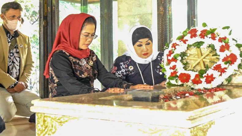 JAKARTA – Ketua Umum Dewan Koperasi Indonesia (Dekopin) Sri Untari Bisowarno berziarah ke makam Bung Hatta, proklamator sekaligus Bapak Koperasi Indonesia, di TPU Tanah Kusir, Bintaro, Jakarta Selatan, Kamis (7/7/2022),