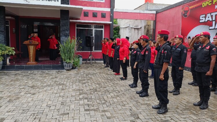 Suhardo, Wakil Ketua Bidang Kehormatan Partai, Ideologi dan Kaderisasi yang juga kader senior partai memimpin jalannya upacara yang diikuti kader dan pengurus partai di tingkat cabang, anak cabang, serta para Satgas.