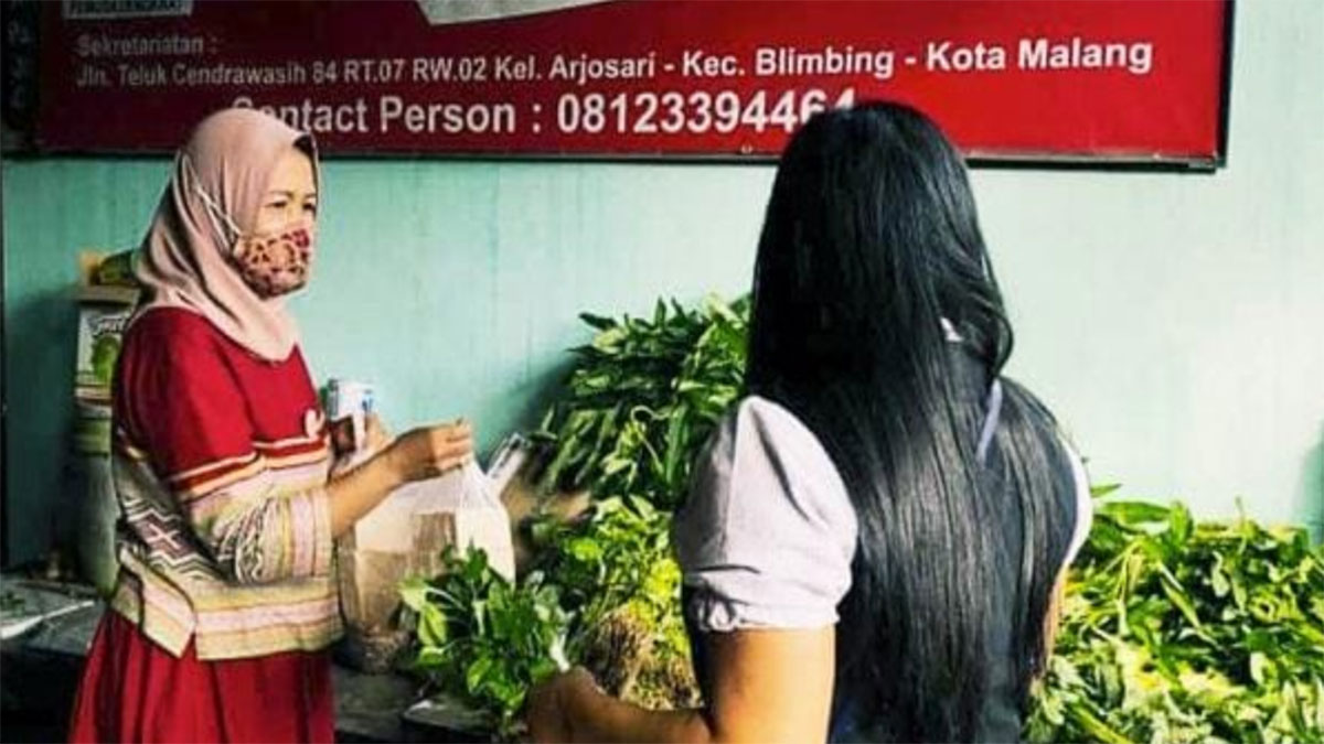 MALANG – Sekretaris Pengurus Anak Cabang (PAC) PDI Perjuangan Kecamatan Blimbing yang juga Ketua DPC Pemuda Demokrat Indonesia Kota Malang, Sugiono menggelar aksi sosial dengan membagikan sayuran (kangkung dan sawi), telur, dan tempe untuk masyarakat yang membutuhkan, Kamis (5/8/2021).