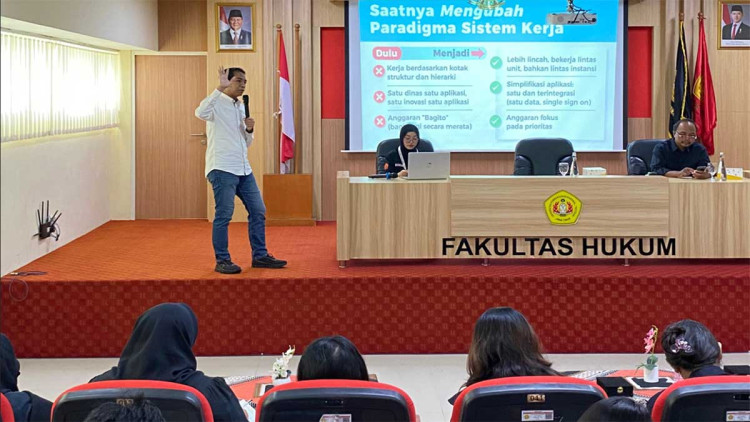 Hal itu dia sampaikan saat menjadi pembicara diskusi bertajuk “Inovasi Regulasi untuk Pembangunan Berkelanjutan” yang digelar oleh Badan Legislatif Mahasiswa (BLM) Fakultas Hukum Universitas Pembangunan Nasional (UPN) “Veteran” Jawa Timur, Kamis (6/11/2025).