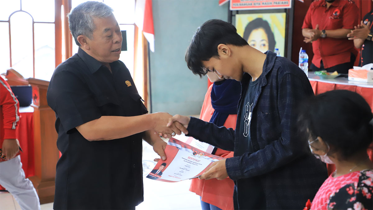 Secara simbolis, sertifikat beasiswa program pemerintahan Presiden Jokowi itu diserahkan Ketua Dewan Pimpinan Daerah Partai Demokrasi Indonesia Perjuangan Jawa Timur Kusnadi, di Kantor Sekretariat DPC PDIP Kabupaten Trenggalek, Sabtu (27/8/2022).