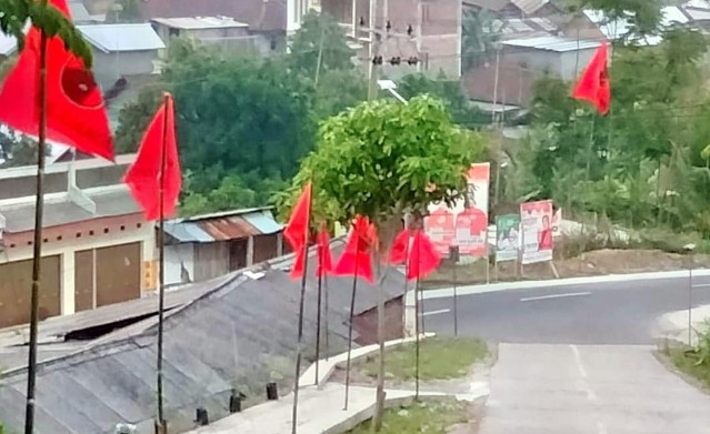 Sebelum dirusak dan dicuri, bendera partai Banteng Moncong Putih tersebut berdiri gagah di sepanjang jalan desa. Tepatnya berada di sisi kiri bahu jalan. Sejurus kemudian, beberapa titik hanya menyisakan tiang bambu. Bendera partai lenyap dicuri orang.