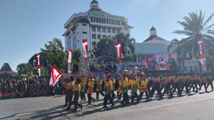 PONOROGO – Bupati Ponorogo, Sugiri Sancoko, memberangkatkan ratusan siswa-siswi lomba kirab Pramuka di Alun-Alun Ponorogo, Rabu (14/8/2024) pagi. Ada 28 regu kirab Pramuka yang terdiri atas 13 Pramuka Penggalang (SMP/sederajat) dan 15 Pramuka Penegak (SMA/sederajat). Kirab Pramuka tersebut dalam rangka memperingati Hari Ulang Tahun ke-63 Pramuka.