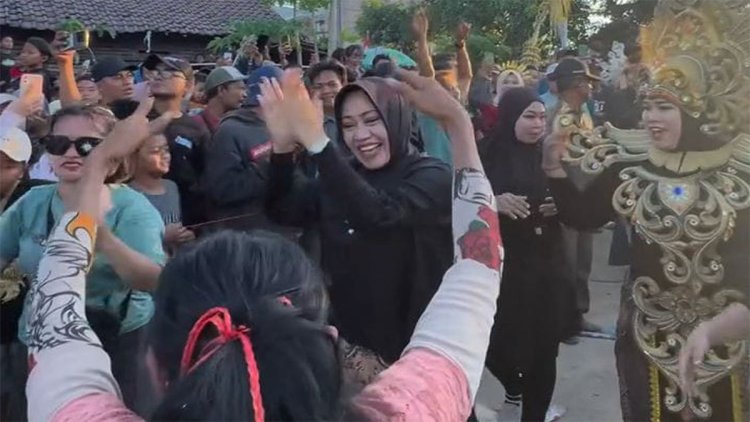 MOJOKERTO – Bupati Mojokerto Ikfina Fahmawati hanyut dalam euforia bersama warga Desa Cinandang, Kecamatan Dawarblandong, Kabupaten Mojokerto, Minggu (8/9/2024).