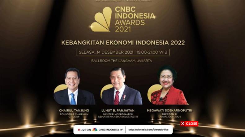 Puan menerima penghargaan untuk Megawati secara daring, Selasa (14/12/2021). Ia menyampaikan rasa terima kasih atas penghargaan untuk Megawati kepada Redaksi CNBC Indonesia dan juga Founder sekaligus Chairman CT Corp, Chairul Tanjung.
