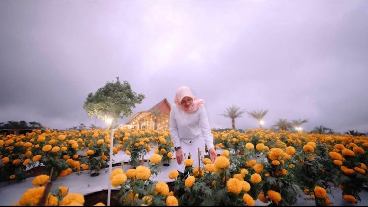 Di lahan seluas 10,5 hektar tersebut, pengunjung dapat menikmati udara segar khas pegunungan sambil melihat hamparan berbagai aneka tanaman bunga beraneka warna serta sayuran yang menyegarkan mata.