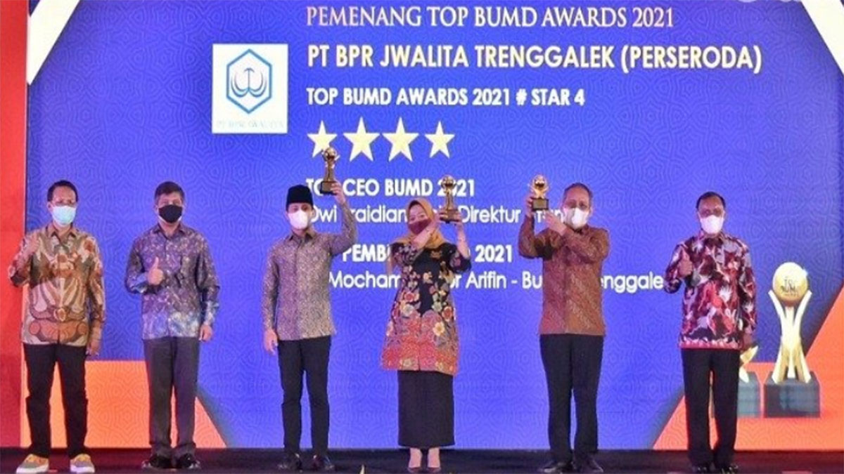 TRENGGALEK – Bupati Trenggalek Mochamad Nur Arifin merasa bangga PT BPR Jwalita Trenggalek (Perseroda) bisa meraih prestasi Top BUMD 2021 di tengah badai Pandemi Covid 19.