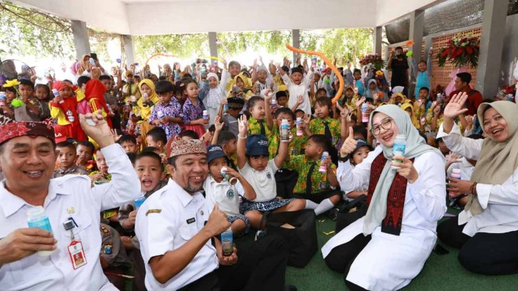 Bupati Ipuk Bersama Ratusan Anak dalam Kampanye Makan Daging, Telur dan Minum Susu