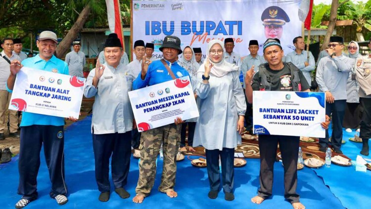BANYUWANGI – Pemerintah Kabupaten (Pemkab) Banyuwangi menyalurkan bantuan mesin kapal dan alat bantu penangkapan ikan untuk nelayan. Bupati Banyuwangi, Ipuk Fiestiandani, menyerahkan bantuan tersebut secara simbolis pada sejumlah kelompok nelayan di Pantai Indah Kedunen, Desa Bomo, Kecamatan Blimbingsari, Jumat (6/2/2025).