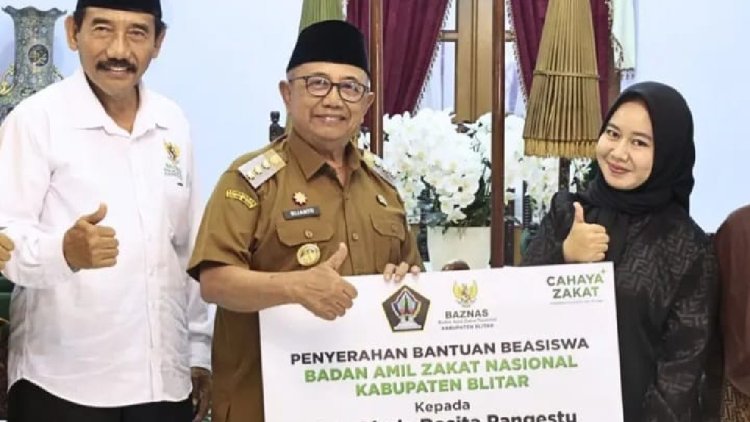 Hal tersebut dibuktikan dengan penyaluran bantuan beasiswa pendidikan oleh Bupati Blitar Rijanto bersama Baznas Kabupaten Blitar kepada mahasiswa asal Desa Sumberasri, Kecamatan Nglegok, di Pendopo Ronggo Hadinegoro, Selasa (6/5/2025).