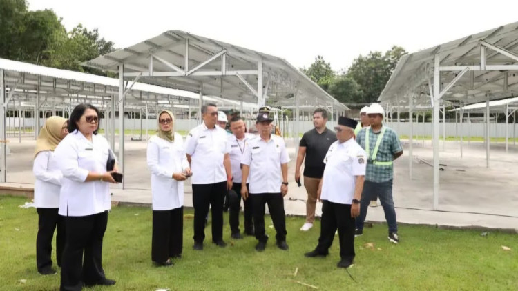 Mereka mengecek letak lapak, akses kendaraan, hingga kebutuhan pendukung operasional pasar sementara.