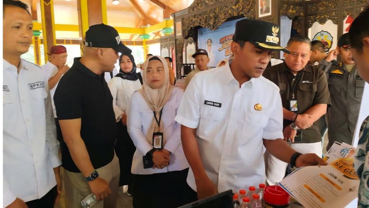 Usai membuka acara, Bupati Lukman beserta para tamu undangan meninjau satu per satu stand perusahaan yang membuka lowongan kerja.