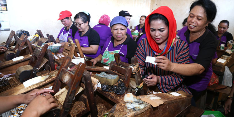 MALANG – Selama kunjungan di Kabupaten Malang, Senin (19/2/2018), Cawagub Jatim Puti Guntur Soekarno juga menyapa ribuan buruh perempuan yang bekerja di tiga pabrik rokok. Yakni Pabrik Rokok (PR) Pakis Mas, PR Gudang Baru Berkas, dan PR Trubus Alami.