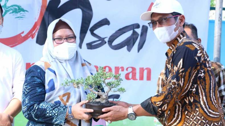 Wakil Bupati Gresik Aminatun Habibah dalam acara kontes bonsai di “kampung bonsai” Desa Petung, Kamis (7/10/2021).