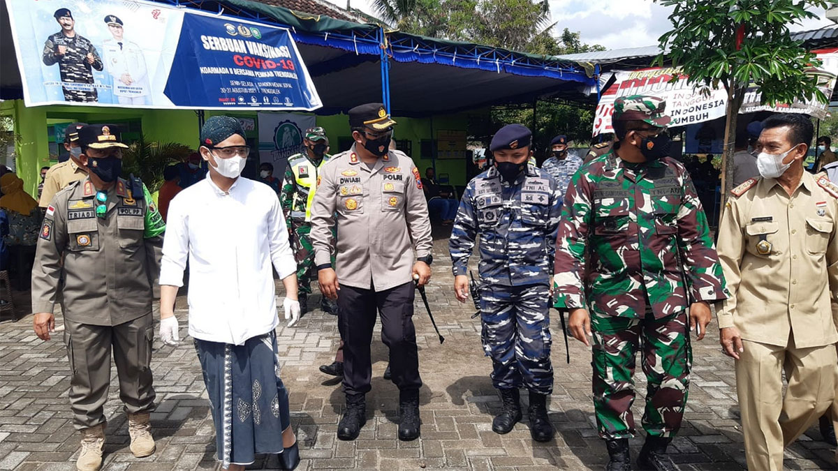 “Saya terima kasih kepada panglima beserta seluruh jajaran,” ucap Arifin, saat meninjau pelaksanaan serbuan vaksin di Stadion Menak Sopal Trenggalek, Senin (30/8/2021).