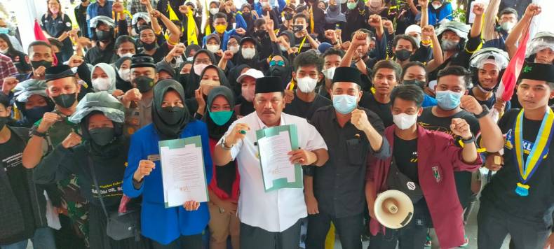 Plt Bupati Marhaen bersama sejumlah pejabat forum komunikasi pimpinan daerah yang menemui langsung para mahasiswa menyampaikan, dalam upaya pemulihan ekonomi khususnya di masa pandemic Covid-19, pihaknya malakukan refocusing anggaran untuk melakukan berbagai upaya.