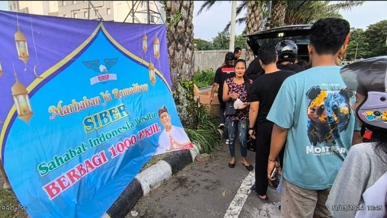 Saking banyaknya warga yang ikut mengantri pembagian takjil terpaksa harus dibagi dalam dua sesi.