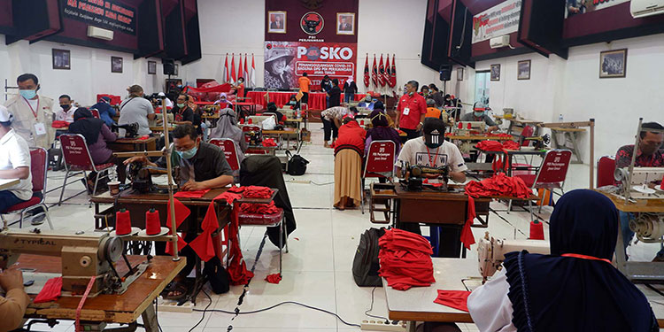 SURABAYA – Virus Corona (Covid-19) mewabah. Masker pun langka. DPD PDI Perjuangan Jawa Timur menghimpun penjahit rumahan untuk memproduksi masker. Tidak itu saja, PDI Perjuangan Jatim juga mengorganisir sejumlah tukang las untuk membuat sarana cuci tangan dari gentong air (padasan).