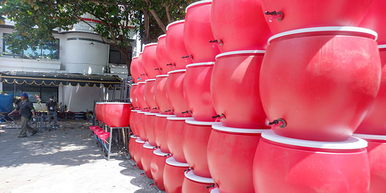 Sementara untuk sarana tempat cuci tangan, PDIP Jatim mengusahakannya dalam paket lengkap. Yakni gentong air kapasitas 120 liter lengkap beserta kran air dan rangka dudukannya dari bahan plat besi.