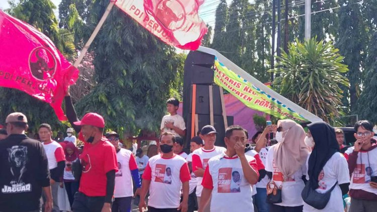 Sugiri optimis menang bisa menjadi Bupati Ponorogo 2 periode. Apalagi banyak massa yang hadir untuk mengantarnya ke kantor KPU.