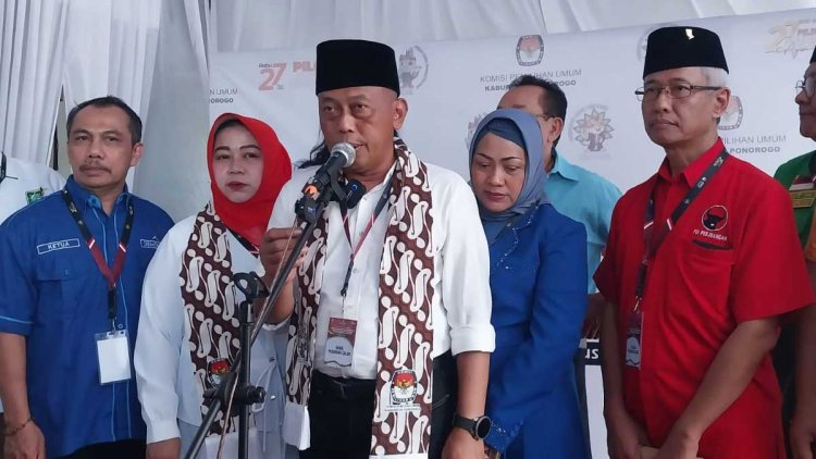 PONOROGO – Calon Bupati dan Calon Wakil Bupati Ponorogo, Sugiri Sancoko dan Lisdyarita, resmi mendaftar sebagai peserta Pemilihan Bupati (Pilbup) Ponorogo 2024 di Kantor KPU Ponorogo, Selasa (27/8/2024) sore.