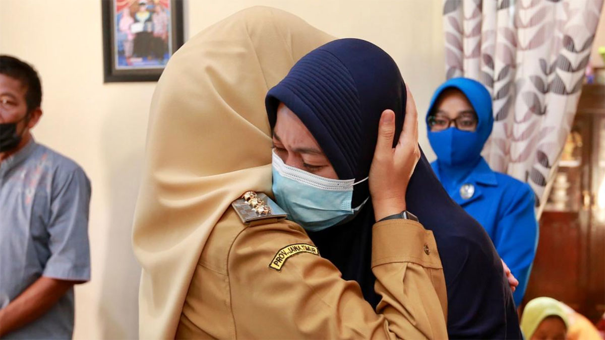 Di sana, juga ada ibu korban, Haniyah, yang sangat terpukul atas kepergian putra sulungnya. Dengan mata terpejam, Haniyah menceritakan putranya kepada Ipuk. ”Dia anak kesayangan kami, kebanggaan kami. Doakan anak kami ya Bu,” ujar Haniyah.