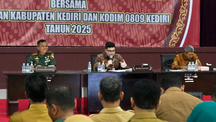 Rapat koordinasi bersama jajaran kepala dinas dan Forkopimcam dilakukan Bupati Kediri Hanindhito Himawan Pramana bersama Komandan Kodim 0809 Letkol Inf Ragil Jaka Utama, Selasa (11/11/2025) sore.