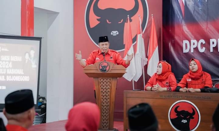 Ketua DPC PDI Perjuangan Bojonegoro, Abidin Fikri dalam pengarahannya menyampaikan, acara untuk mengingatkan kembali kepada pelatih saksi terkait materi-materi yang akan disampaikan dalam acara pelatihan-pelatihan saksi tingkat TPS.
