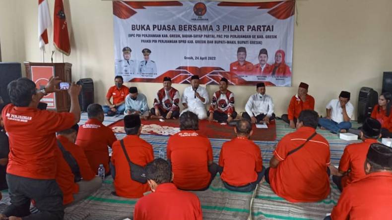 GRESIK – DPC PDI Perjuangan Kabupaten Gresik, menggelar buka puasa bersama tiga pilar di kantor DPC Jl Jaksa Agung Suprapro, Minggu (24/4/2022) kemarin.