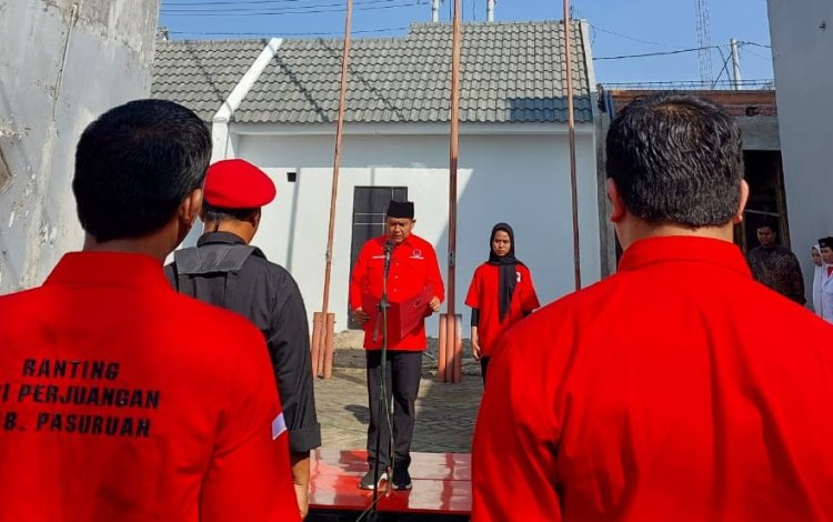 Upacara berlangsung khidmat dan penuh semangat kebangsaan, dipimpin langsung oleh Ketua DPC PDI Perjuangan Kabupaten Pasuruan, Andri Wahyudi.
