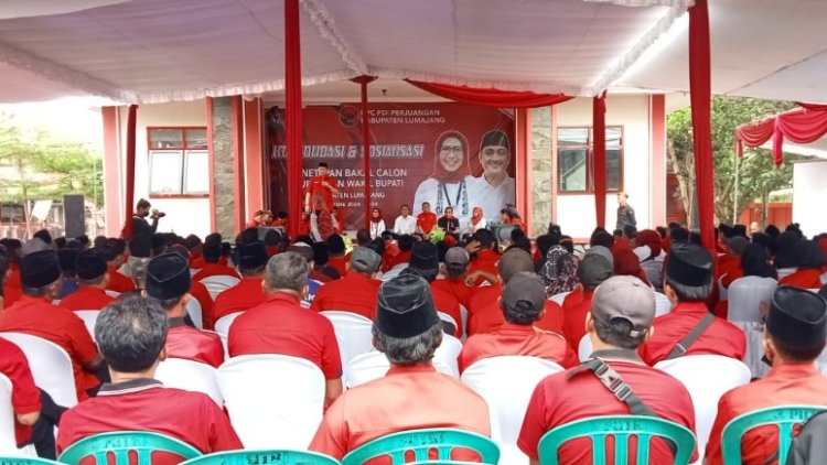Konsolidasi sekaligus sosialisasi paslon Bunda Indah – Mas Yudha dilaksanakan di kantor DPC PDI Perjuangan Lumajang, Rabu (28/8/2024).