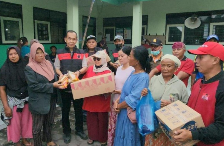 DPC PDI Perjuangan Lumajang Salurkan Mamin untuk Pengungsi Erupsi Semeru