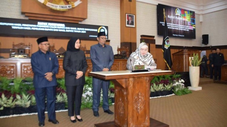 BANYUWANGI – Dewan Perwakilan Rakyat Daerah (DPRD) Banyuwangi menggelar rapat paripurna dengan agenda Pengumuman Hasil Penetapan Ipuk Fiestiandani dan Mujiono sebagai pasangan Bupati dan Wakil Bupati Banyuwangi terpilih hasil Pilkada 2024, Rabu (12/02/2025) malam.