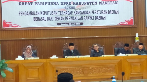 “Setelah melalui rangkaian pembahasan dan fasilitasi, akhirnya hari ini DPRD Magetan mengesahkannya menjadi perda,” ujar Ketua DPRD Magetan, Sujatno.