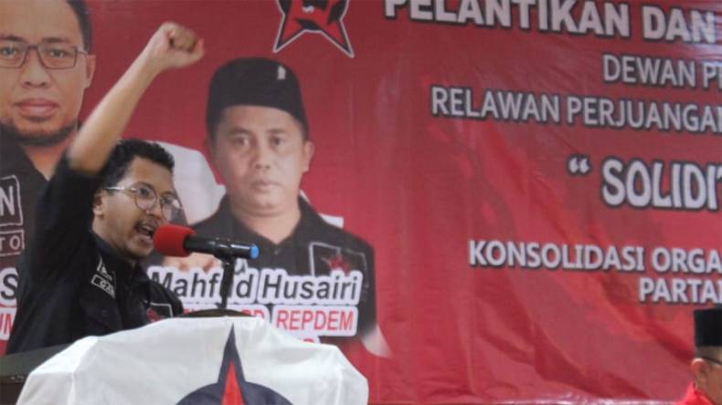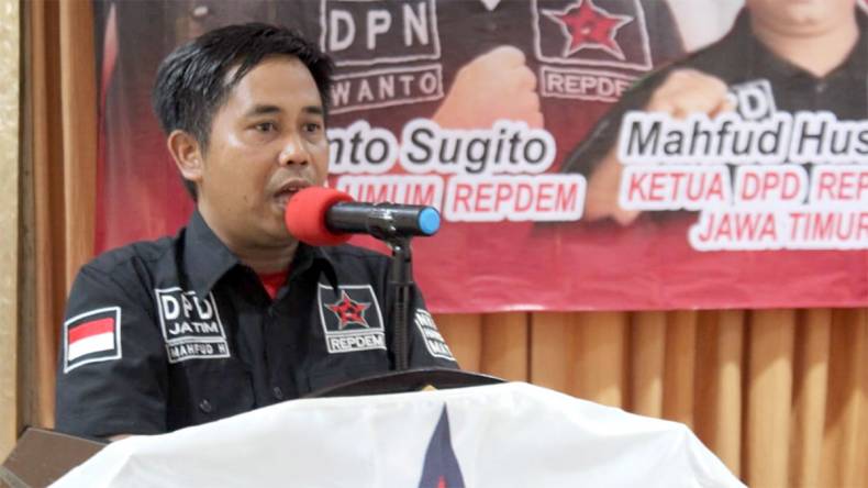 Ketua DPD Repdem Jawa Timur Mahfud Husairi yang hadir di acara pelantikan mengingatkan ikhwal kehadiran Repdem di tengah masyarakat.