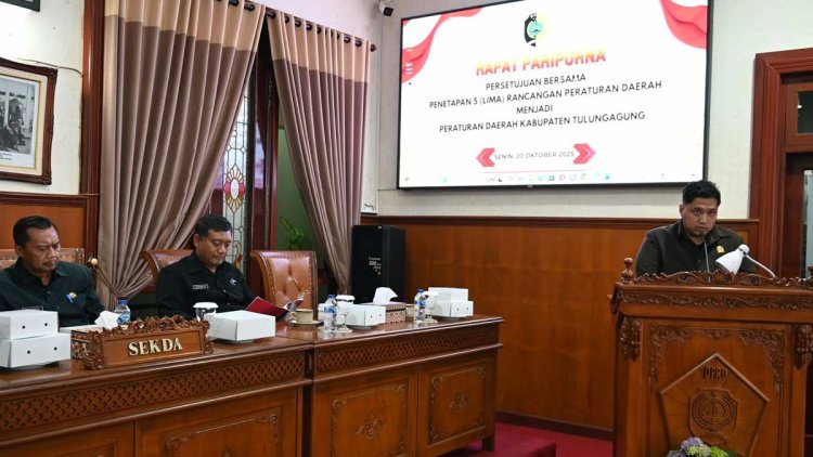 TULUNGAGUNG – Fraksi PDI Perjuangan DPRD Kabupaten Tulungagung menyampaikan pendapat akhir terhadap 5 (lima) rancangan peraturan daerah (raperda) dalam rapat paripurna di Kantor DPRD setempat, pada Senin (20/10/2025).