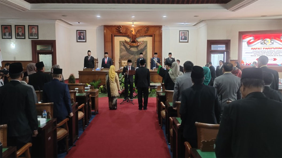 Pelantikan berlangsung dalam rapat paripurna di Ruang Graha Wicaksana Kantor DPRD Tulungagung, Jumat (6/1/2023) dihadiri Bupati Tulungagung Maryoto Birowo dan Wabup Tulungagung Gatut Sunu Wibowo.