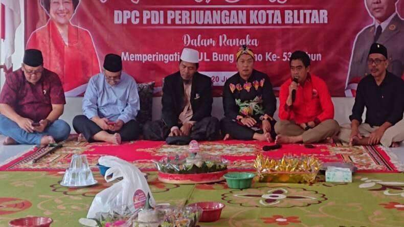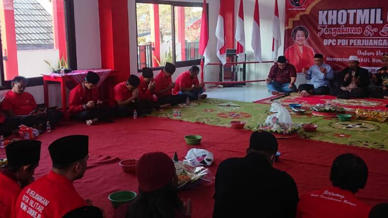 BLITAR – Memperingati Haul Bung Karno ke-53 Tahun, DPC PDI Perjuangan Kota Blitar menggelar Khotmil Quran dan Tahlil Bersama di kantor DPC, Selasa (20/6/2023).