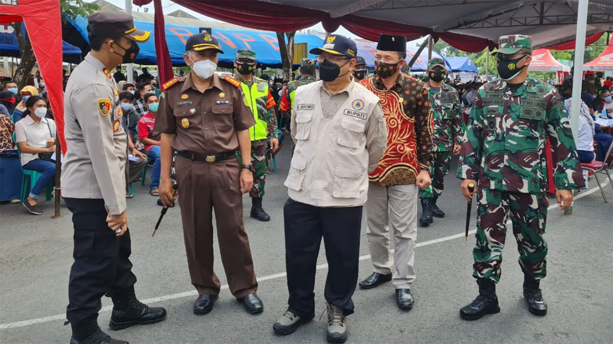 “Target bulan Agustus sudah tercapai herd immunity terus diupayakan,” kata Maryoto usai bersama Danrem 081/DSJ, Kolonel Inf Waris Ari Nugroho dan Forkopimda Tulungagung meninjau pelaksanaan Serbian Vaksinasi Covid-19 di GOR Lembu Peteng Kota Tulungagung, Minggu (18/7/2021).