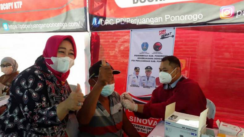 Sementara itu, Wakil Bupati Ponorogo, Lisdyarita, yang turut hadir dalam kegiatan vaksinasi kali ini mengapresiasi PDI Perjuangan.