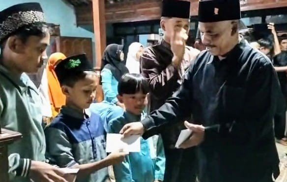 MAGETAN – Wakil Ketua DPRD Magetan, H Suyatno memberikan santunan kepada anak yatim piatu di Kecamatan Panekan, Jumat (4/7/2025) malam.